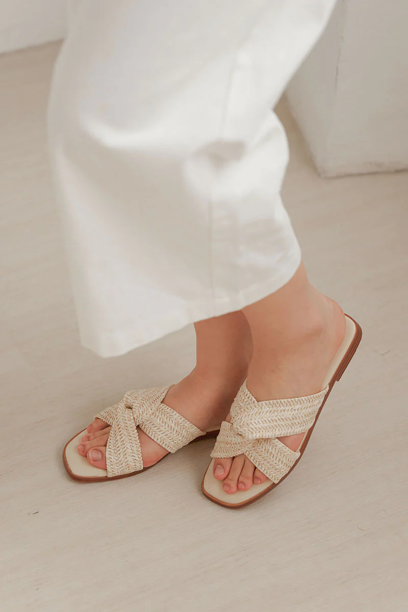 Jessie Cloud Sliders in Cream Rattan