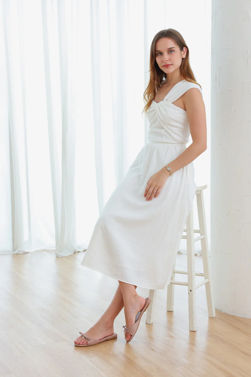 Pearlina Bow Sliders in Dusty Pink Waterproof Satin