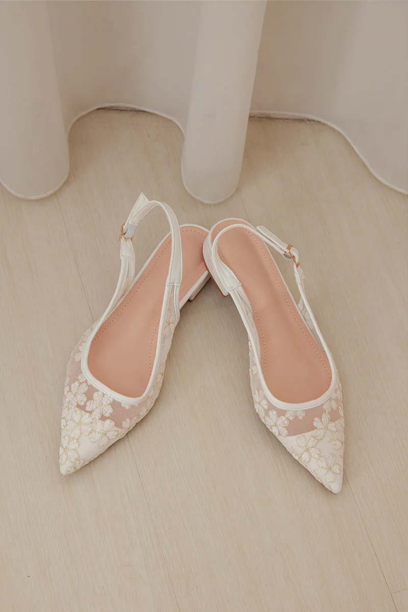 Ruellia Embroidered Slingback Flats in White