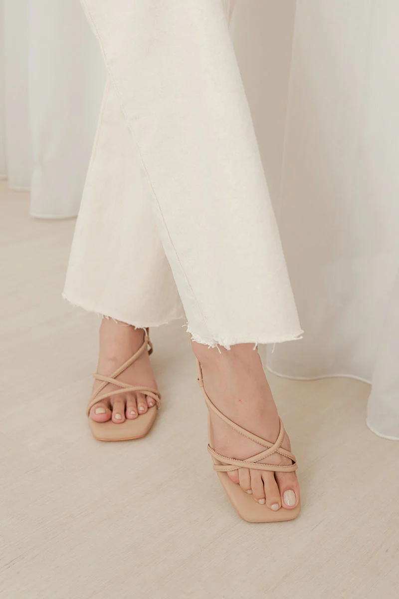 Zaddey Strappy Low Heel Sandals in Nude